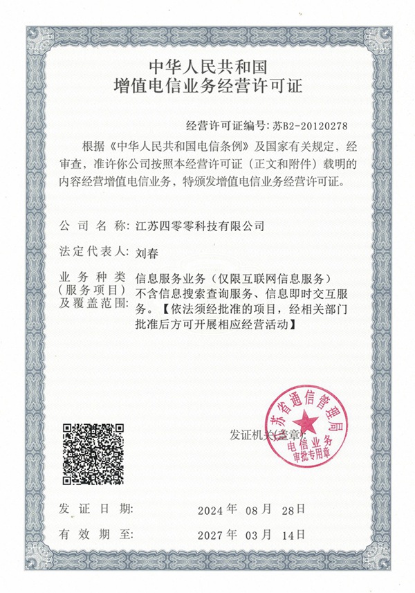 www.400998.cn业务许可及品牌证明